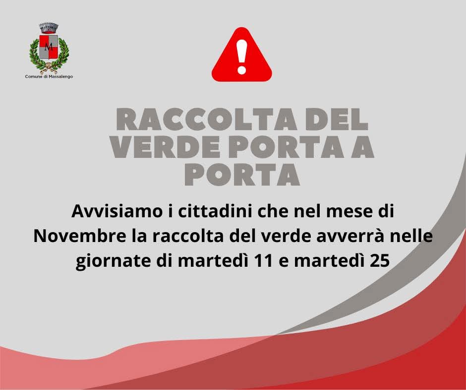 Nel mese di Novembre la raccolta del verde avverrà
