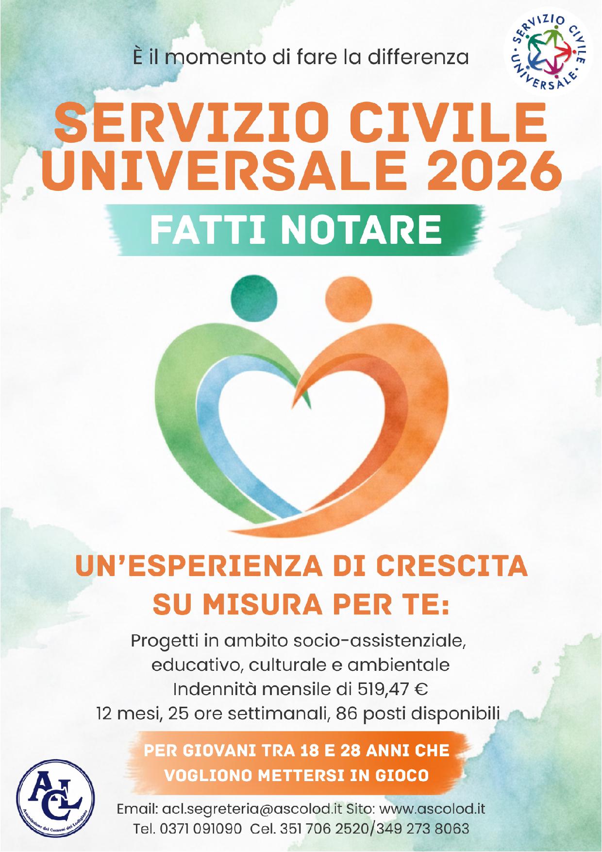 12 mesi, 25 ore settimanali, 86 posti disponibili